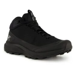 Arc’teryx equips the Aerios Aura Mid Men walking boots with a high-traction Vibram Megagrip sole, which, in turn, is supported by a cushioning EVA midsole and a TPU-reinforced collar. The upper itself is made from recycled PU mesh and is specially reinforced at the heel and toe areas.